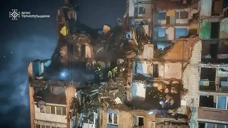 Ukrayna’nın Ternopil kentinde, Rusya’nın gece düzenlediği saldırının ardından yerleşim birimi zarar gördü.